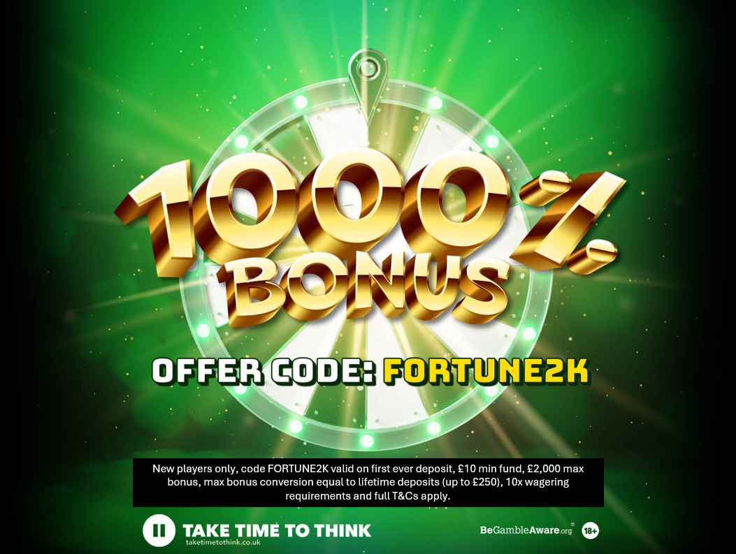 - The Promotion: You will receive a FREE spin of the 'Bonus Wheel' on your first ever qualifying deposit (£10+) on the site with the code FORTUNE2K.